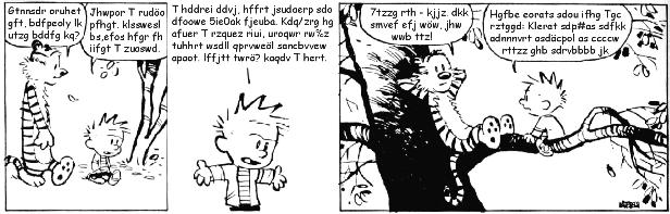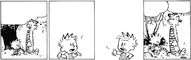 [later]it's ten past one already and i'm pretty tired. i'm feeling strangely melancholic. a very diffuse, unfocused feeling. spent all night writing a mail to c. and had a couple of thoughts which might be worth writing about. but not tonight anymore. tomorrow. but i'll leave you with another calvin & hobbes strip: