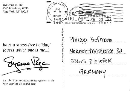 [january 03, 2003]joni mitchell's dark, warm and wooden voice is floating through the flat. it's a christmas present of tara & cedric: travelogue. very classy! it kept raining all night long fiercely against my window but now it has stopped and it is mild outside: window open and the sound from the city makes me feel less cut off from everything. got a mail yesterday night from thomas: he and his wife were at a nina hagen concert on new year's eve but the way he phrased it was a little irritating because the syntax implies that HE was dressed up as a horse in a fetish-rubber suit and not the artists. and since it was already two in the morning when i read the mail and i had also had a couple of beers the image of thomas in a rubber suit somehow stayed with me. boy! talk about nightmares!"and oh my love, my darling